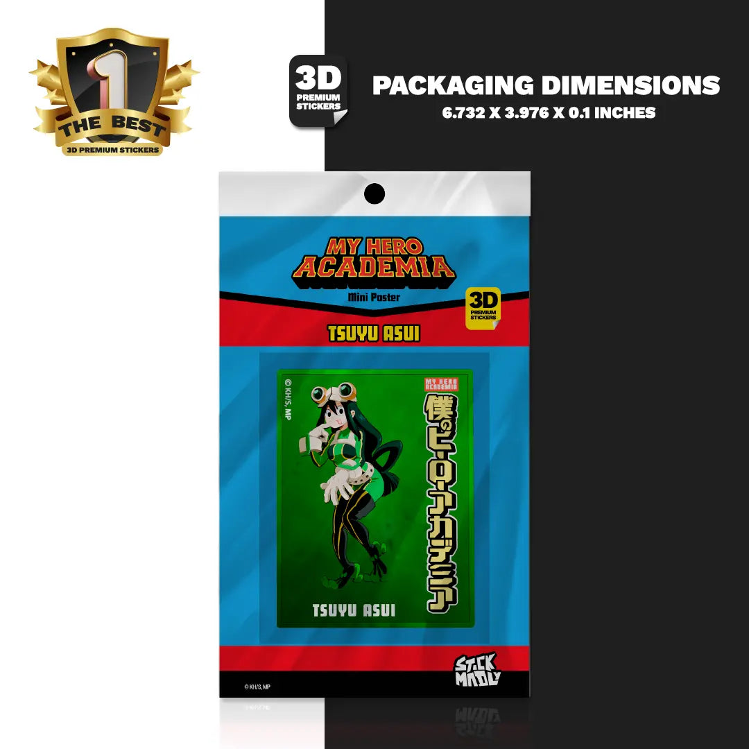 Add a splash of uniqueness to your collection with our Tsuyu Asui Mini Poster Sticker/Emblem — a vibrant design featuring one of My Hero Academia’s most beloved characters. Built for durability and effortless application, this emblem is perfect for fans who want to showcase their anime passion everywhere.