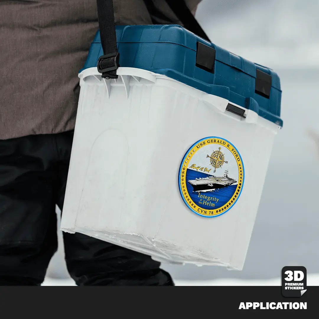 This 3D premium sticker is ideal for Navy veterans, active-duty sailors, ship enthusiasts, and supporters who feel connected to the USS Gerald R. Ford. Use it to personalize your gear, vehicle, or everyday items and carry the pride of naval excellence with you wherever you go.