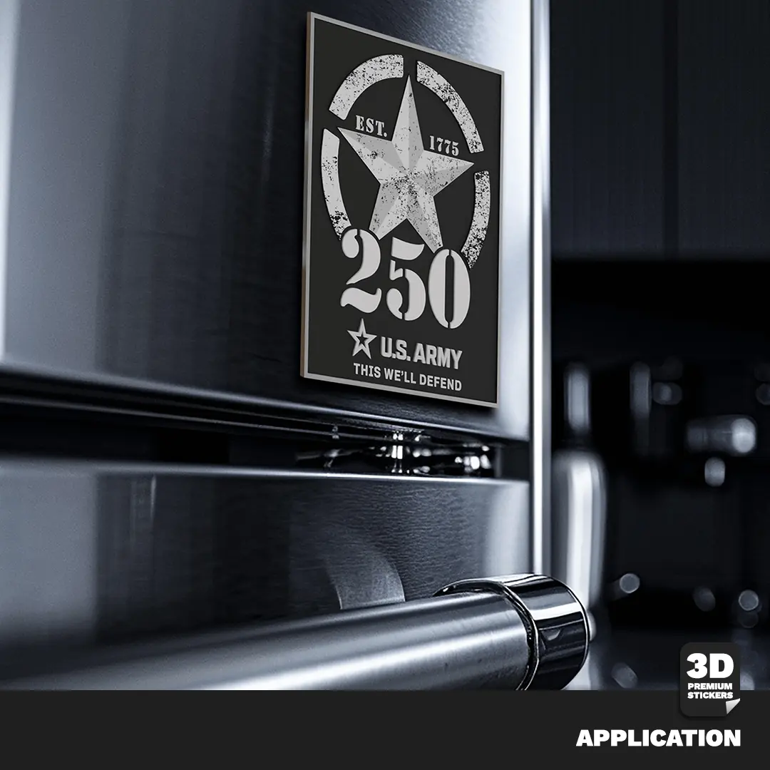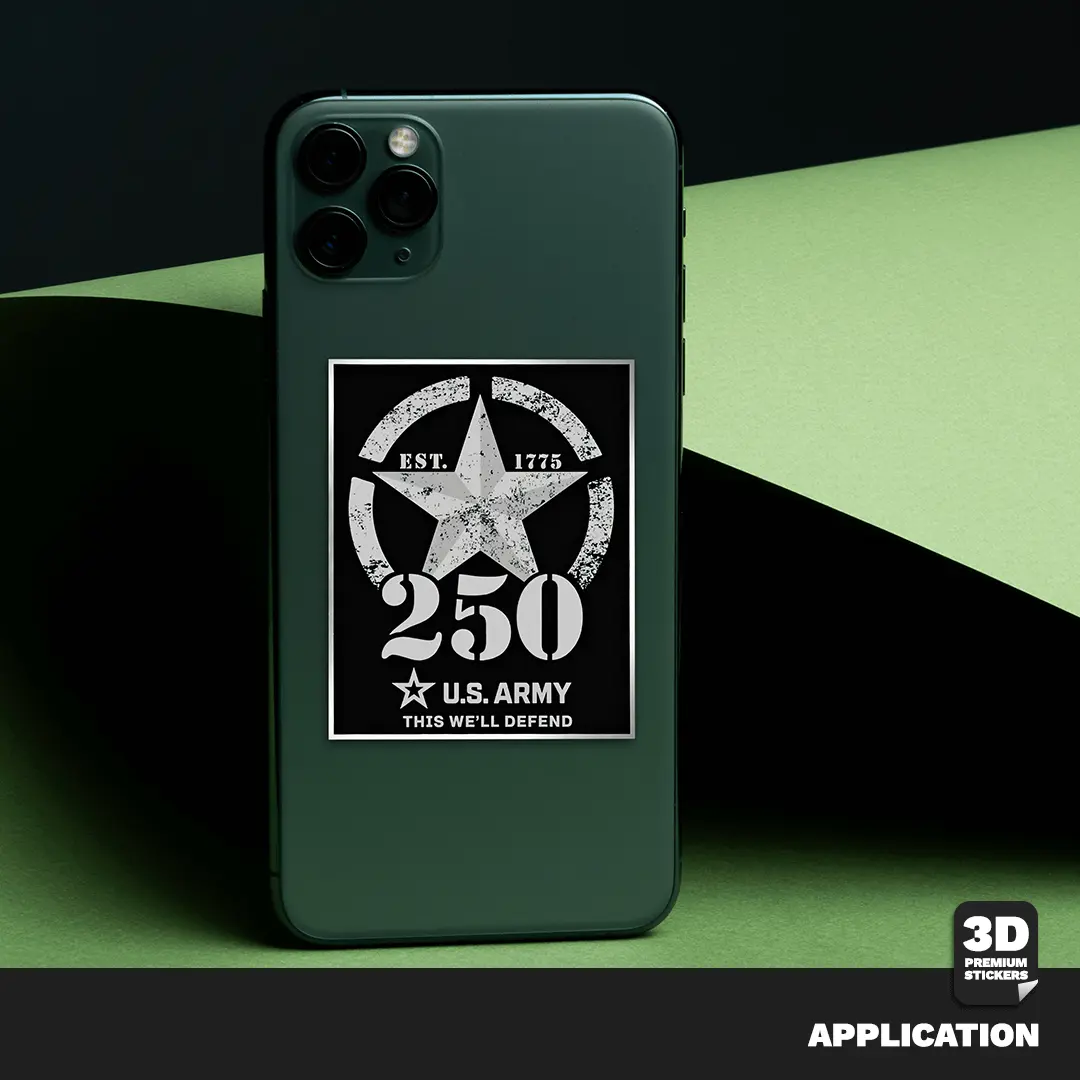Show your pride with the 250th Anniversary White/Silver 3D Premium Sticker, designed to blend timeless style with superior durability. Featuring a crisp white and silver raised 3D design, this sticker makes a bold statement on any surface, perfect for those who connect deeply with Army pride.