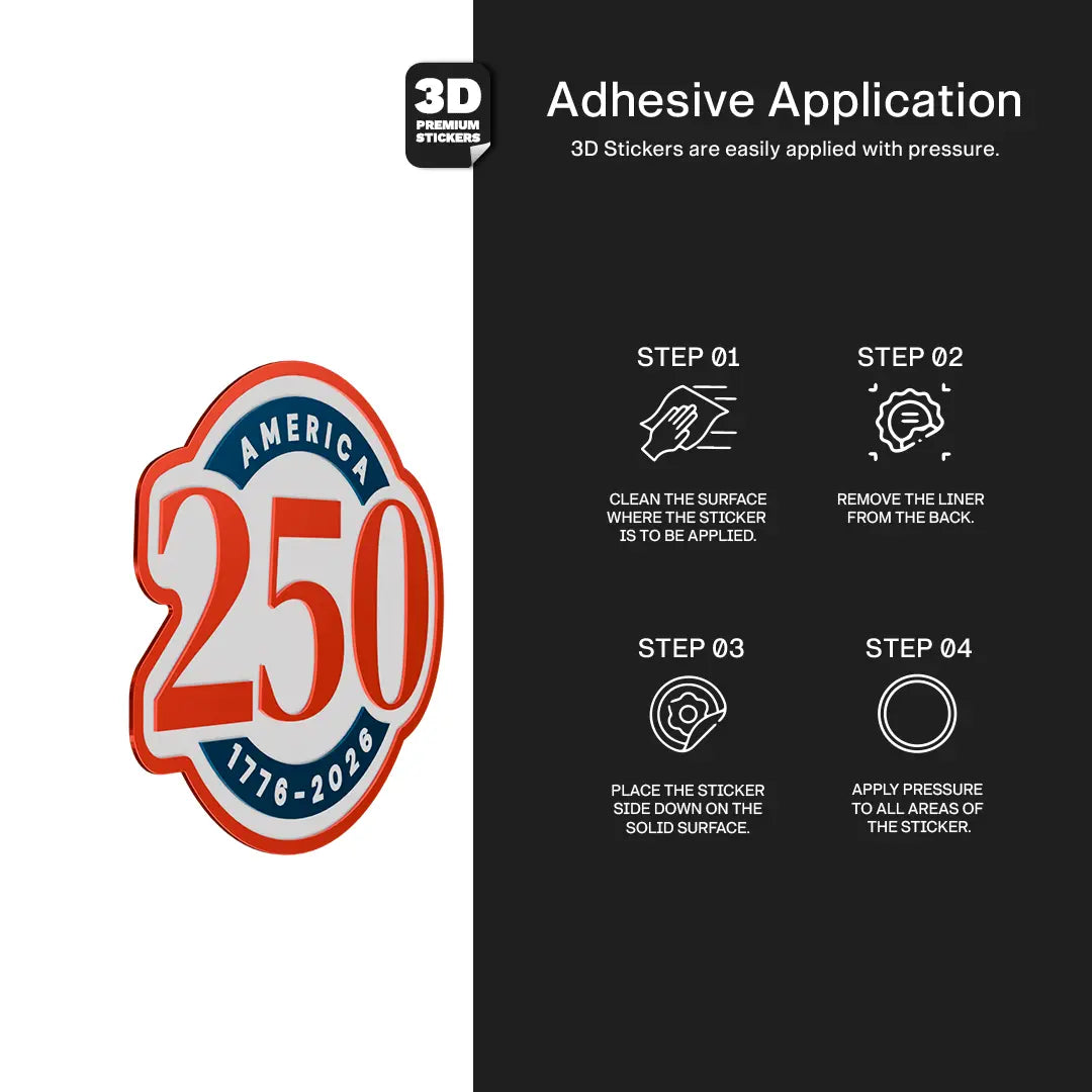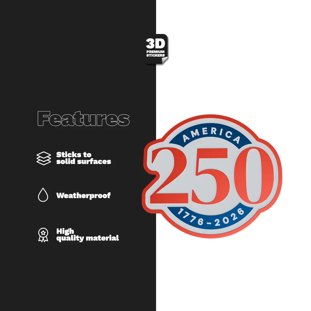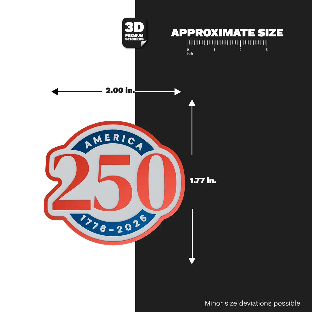 Commemorate 250 years of the United States with the All American Collection America 250 sticker. This 3D printed PVC design features a bold anniversary emblem that stands out on any surface. Weatherproof, durable, and easy to apply, it is the perfect way to keep this historic milestone visible wherever you go.