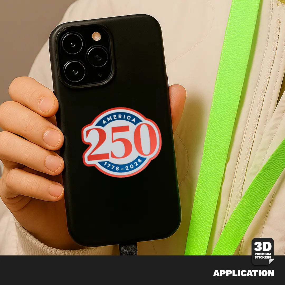 This sticker is designed for individuals who value the history and culture of the United States and want to mark this significant anniversary. Use it to personalize water bottles, phone cases, car windows, laptops, and other everyday items. Wherever you place it, the America 250 design serves as a lasting reminder of this national milestone.
