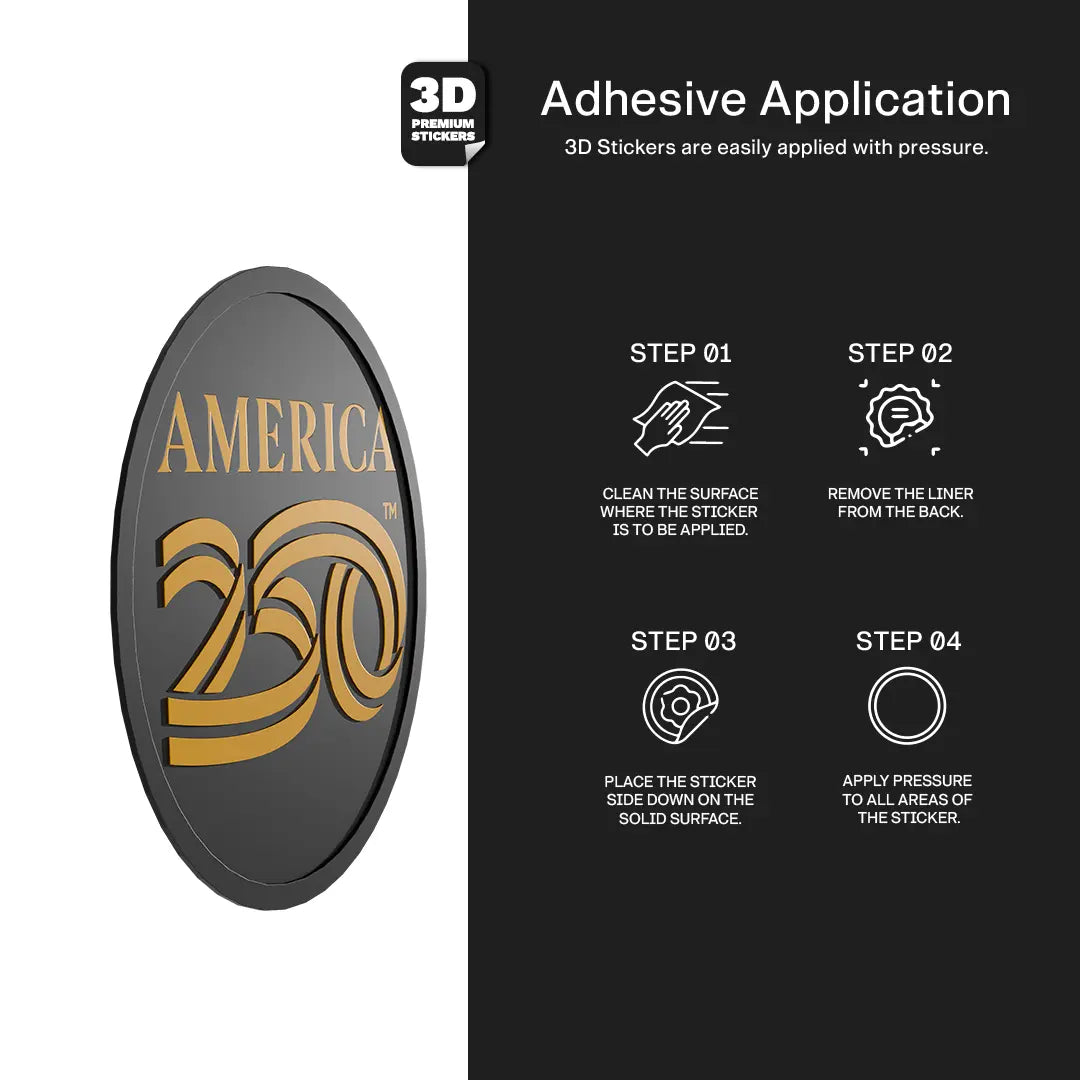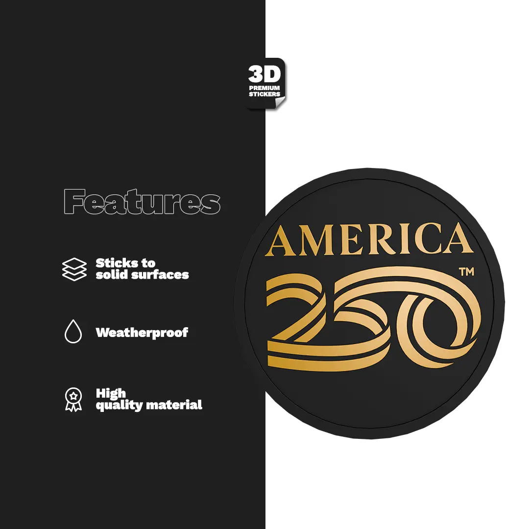 Mark a historic milestone with the All American Collection, created to honor 250 years of the United States. This 3D printed PVC sticker features a bold America 250 emblem with crisp detailing. It is weatherproof, durable, and effortless to apply on solid surfaces, making it a standout addition to your everyday carry.