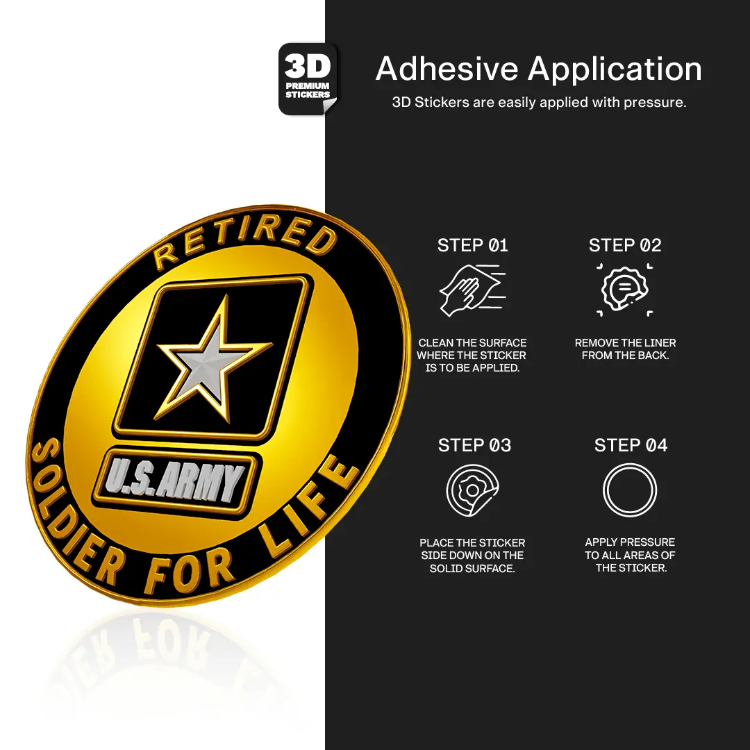 Celebrate a lifetime of service with the Soldier for Life Retired 3D Premium Sticker/Emblem. Built to last and designed to stand out, this sticker/emblem is a proud statement of dedication, honor, and the enduring bond to the U.S. Army. With a raised 3D texture and rugged durability, it’s the perfect way to display your commitment anywhere you go.